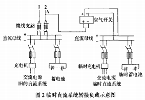 在對現場原有直流體系饋線網絡進行仔細核對后,擬定了替換計劃,總體的替換思路是:搭建一個簡易的暫時直流體系,利用暫時體系轉接負載。如圖2所示。